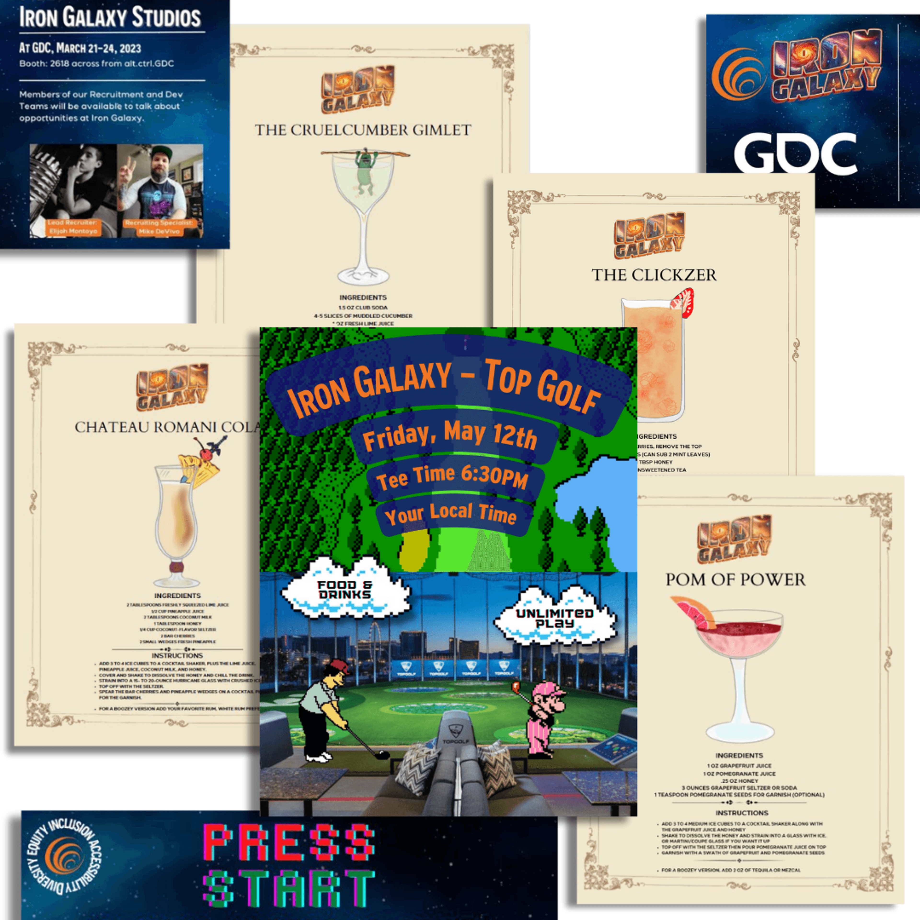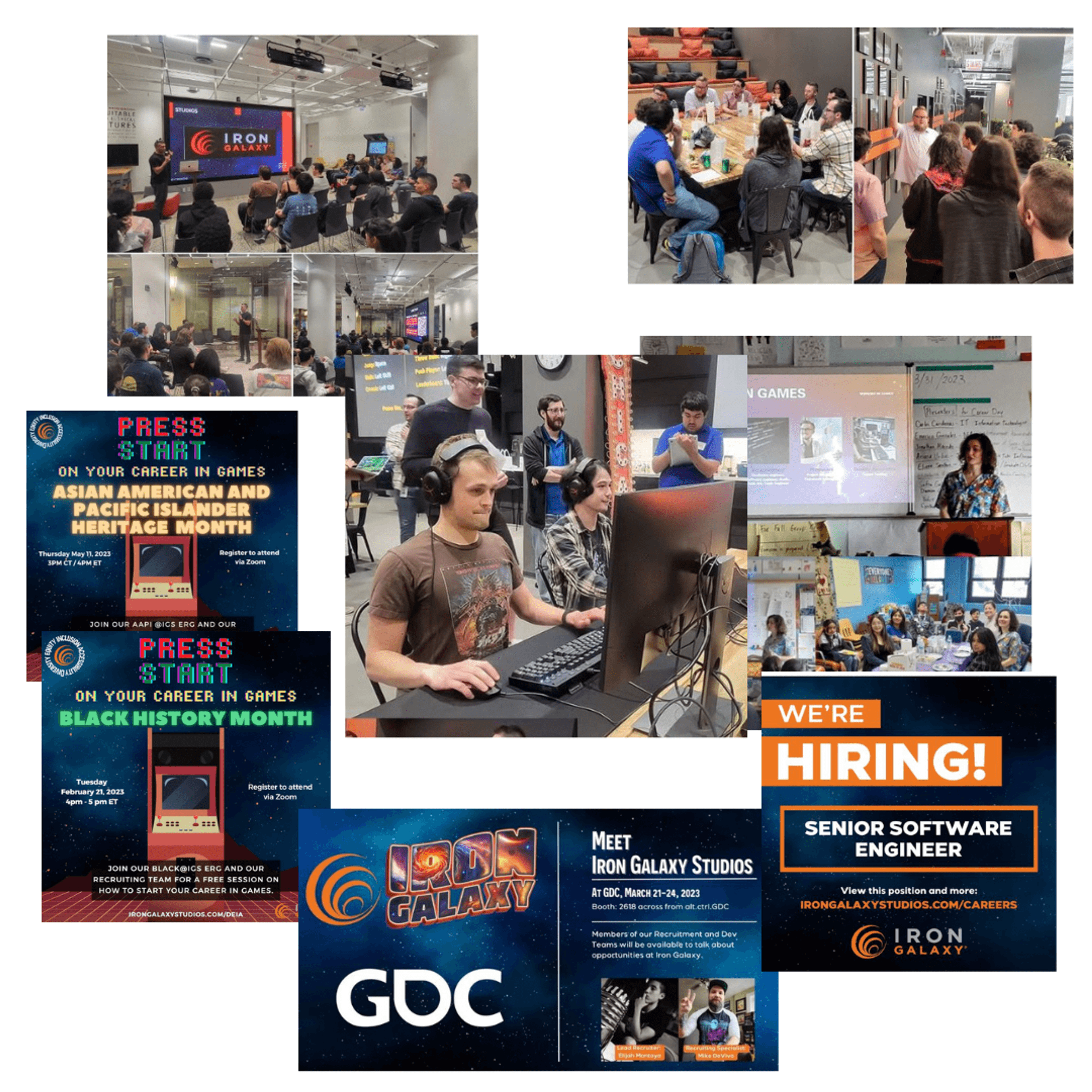 From Sept. 2022 till May 2023 I told the story of Iron Galaxy's people. Through brand development and social media recruitment marketing, running social efforts including our blog, all social platforms, and events marketing. Including: