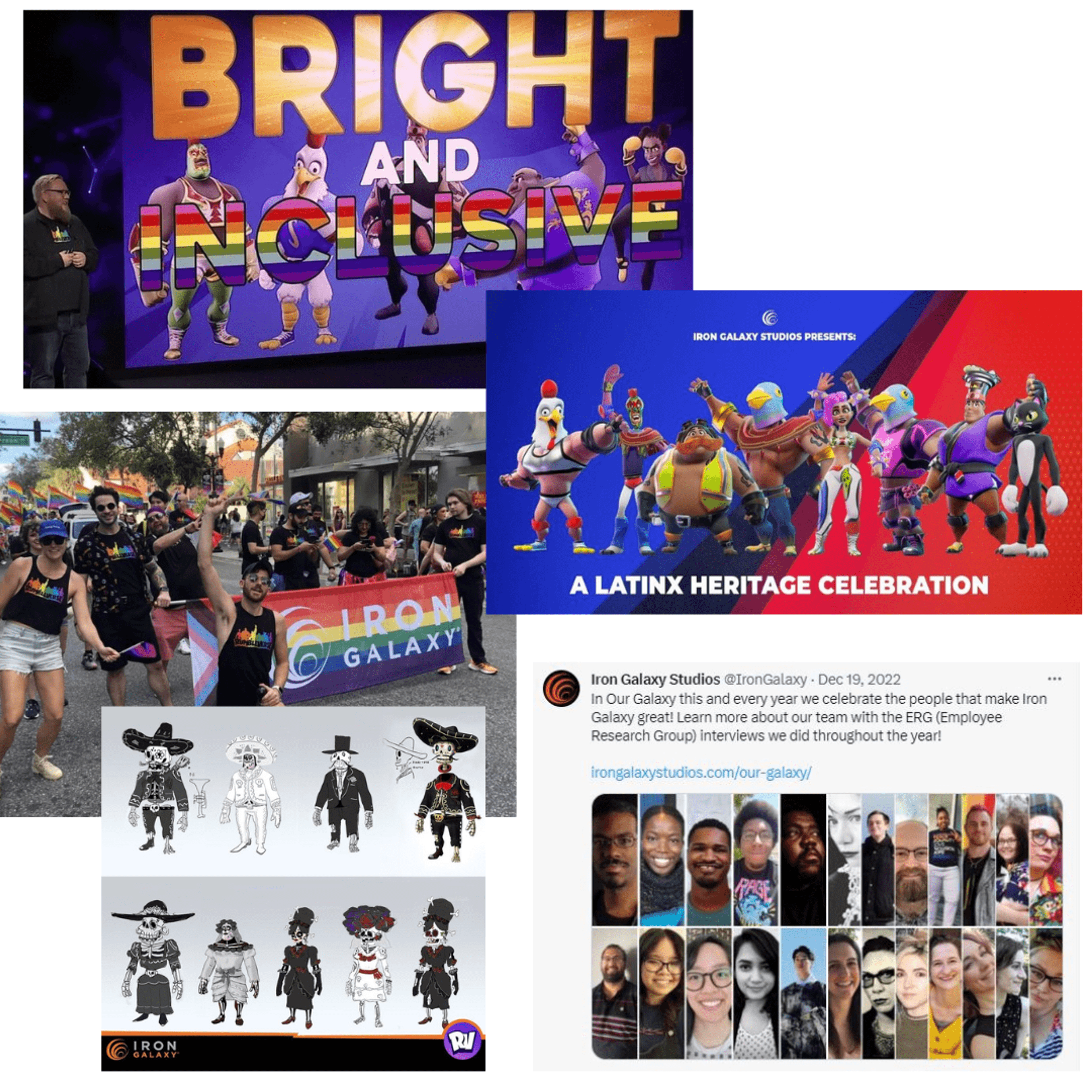 The Iron Galaxy brand was exactly what you'd expect, fun, but the trick was showcasing that in a time when people are just getting back into the studio. I shined a light on internal IPs, slice-of-life moments in the studio, and spotlighting employees and their amazing talents. Along with promoting our time at conferences and giving back to schools and volunteer work.